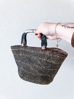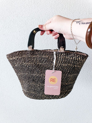 Black and raffia handbag
