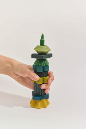 More than candles — these are little sculptures for your home. Each stack is made from a selection of fun shapes in your chosen colour scheme, carefully layered around a central candle. As it burns, the layers melt into a beautiful cascade of colour and form.