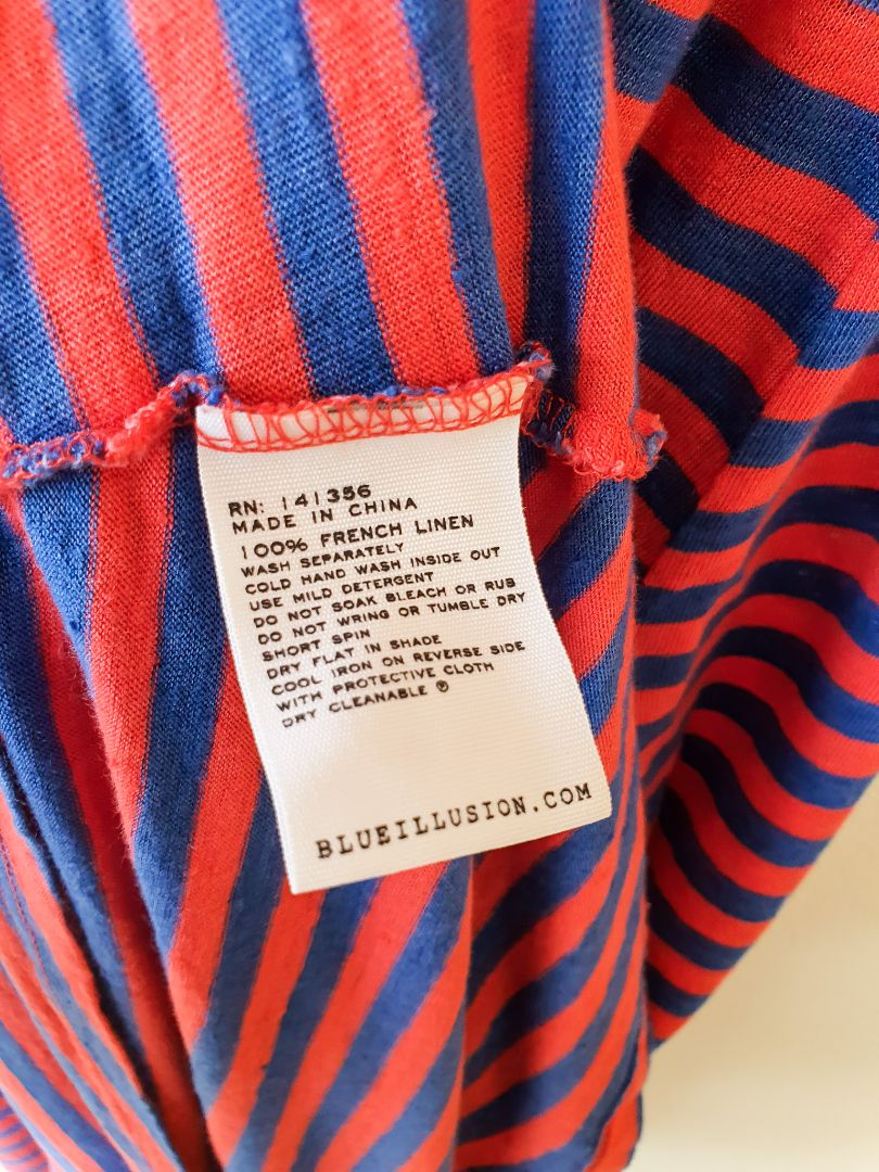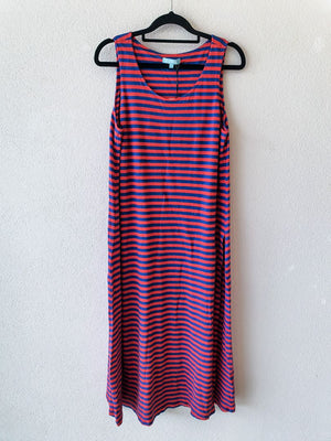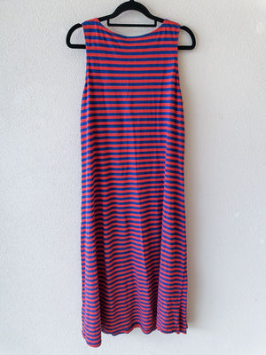 Red and blue striped dress with front flap