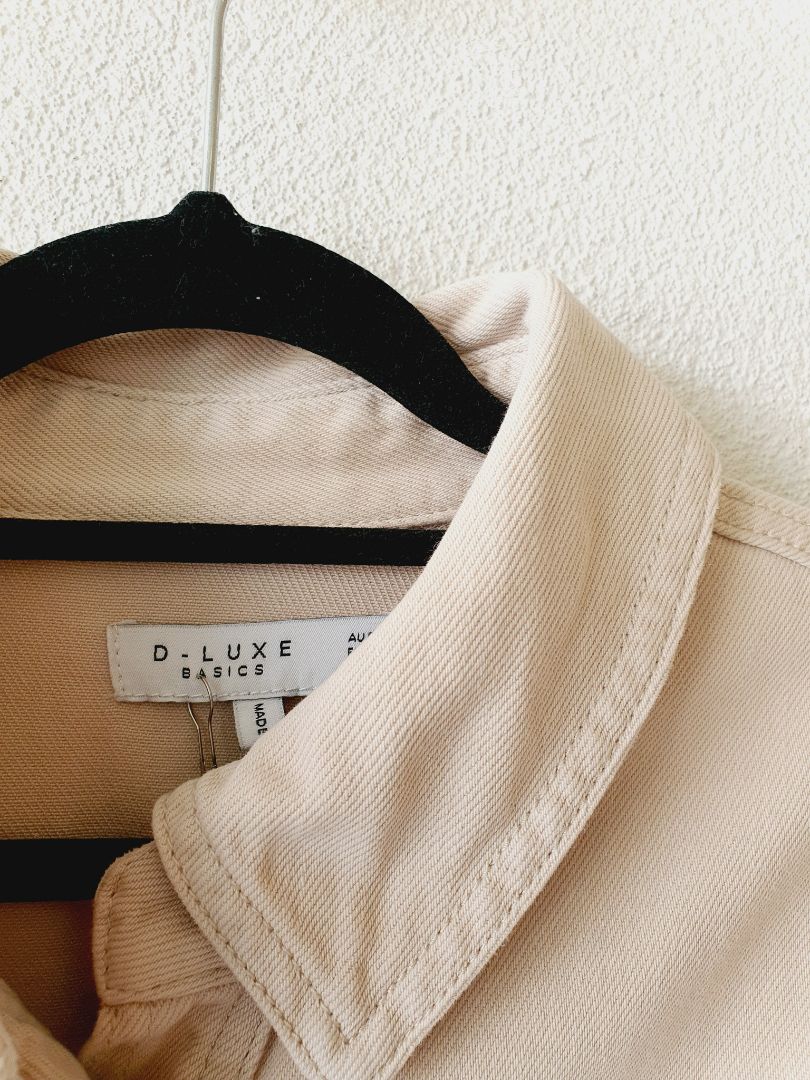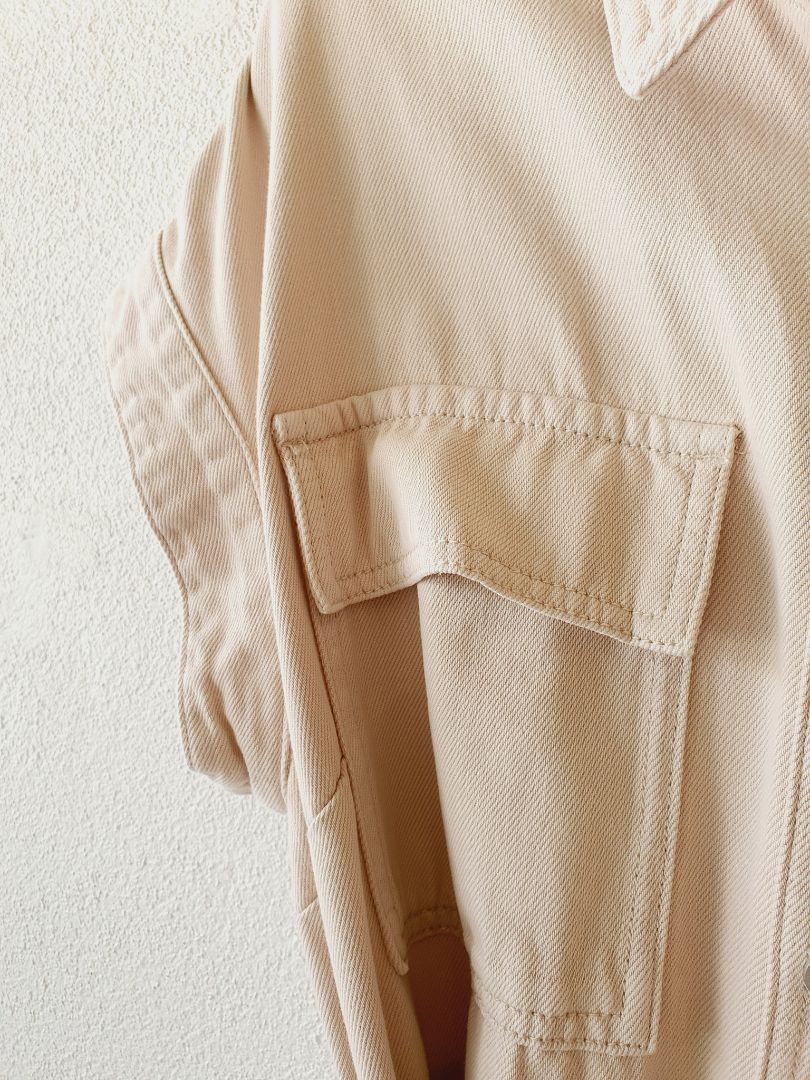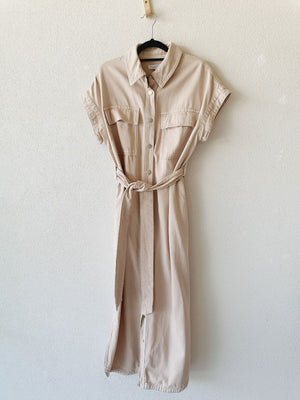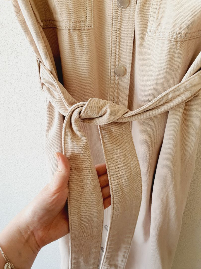 Cream denim button through dress with belt