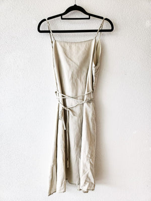 • Linen Blend Sage Green Wrap Dress