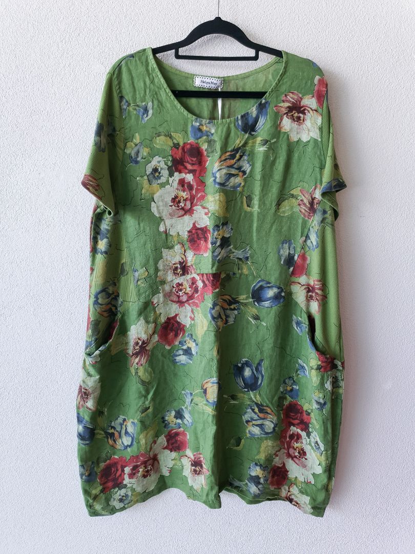Italian Linen Green Floral Jungle Dress