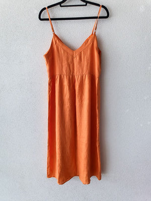 Orange Linen dress with buttons in the front