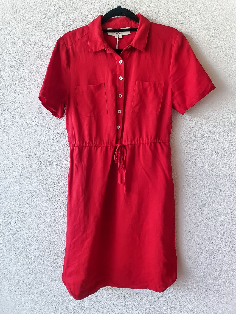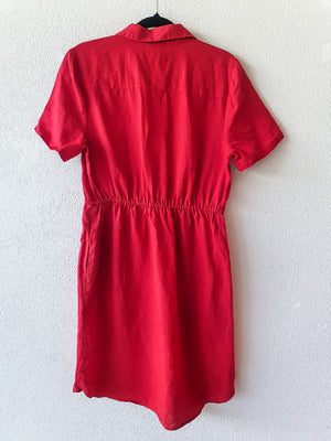 Red Linen Dress with waist tie