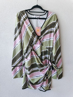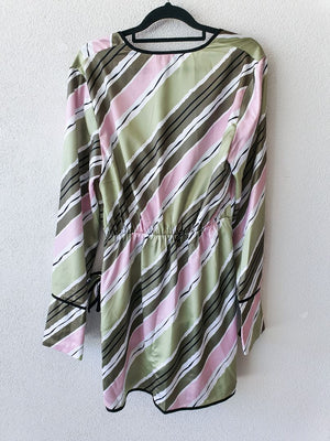 Fun striped mini dress with tie and long sleeves