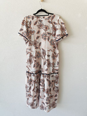 Navy/terracotta/pink on white background pretty summer dress