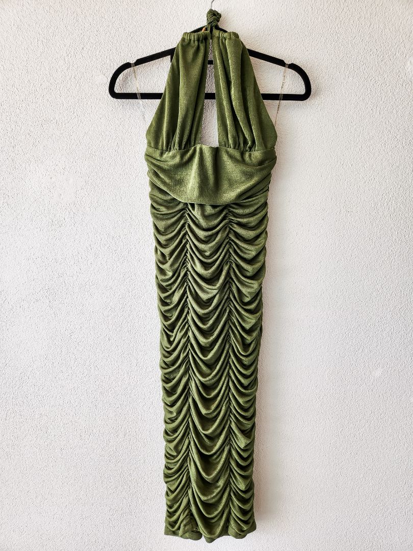 Green garter details midi dress