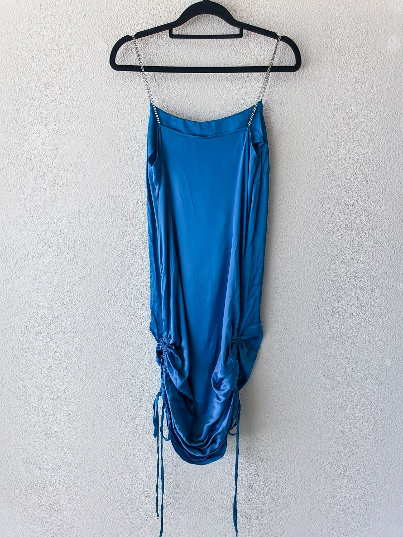 Silky Blue Maxi with Tie Sides and Chain Straps