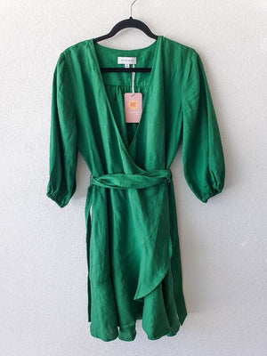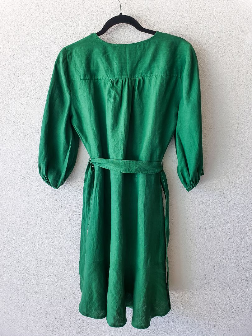 Green Linen Wrap Dress