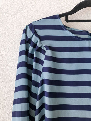 Navy and light blue stripes, ruched shoulders