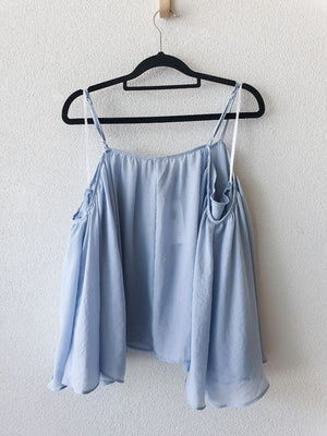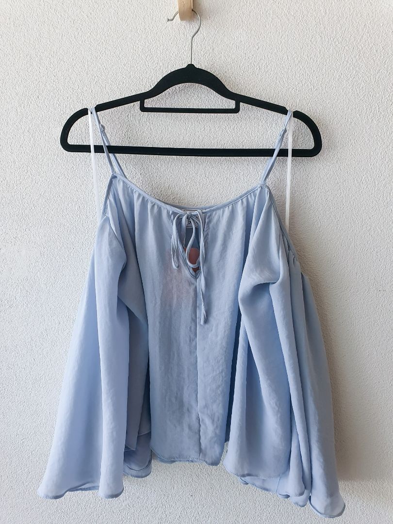 Blue off shoulder flowy top
