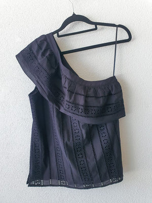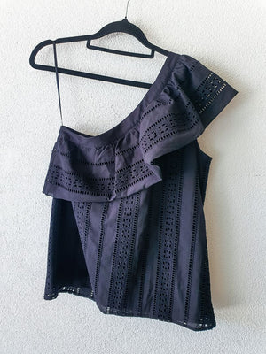 Black one sleeve embroidered top
