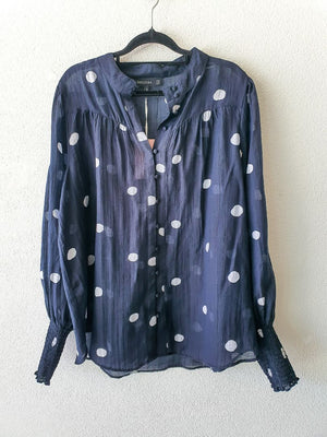 Navy/ Large white polka dots light long sleeve top