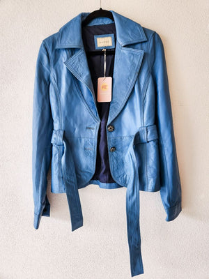 Vintage leather Mango blue jacket. Good vintage condition, some small marks, Best fit size 10-12