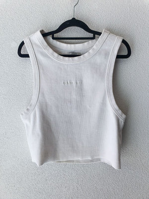 White Ribbed Crop Tank