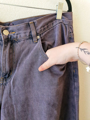 Wide Leg Purple Wash Raw Hem