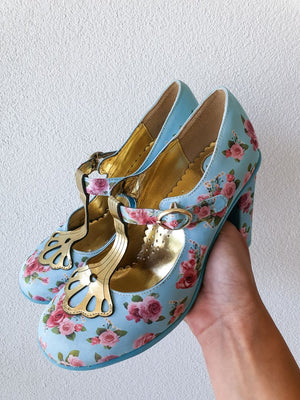 Blue and pink floral shoes