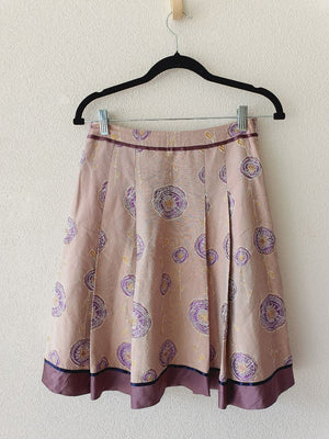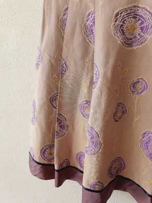 PURPLE FLORAL PLEATED SILK MIDI SKIRT