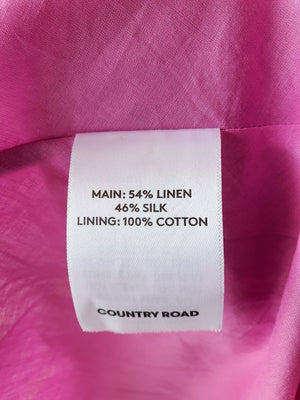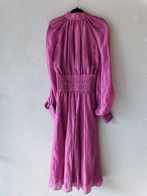 Long-sleeve shirred-waist pink dress - Linen/silk Blend. Size on tag is 4, but best for size 8. Worn once.