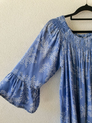 Frilled Blue/White Floral Cotton Tunic Dress