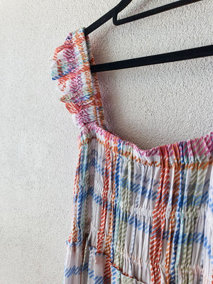 CHECK PATTERN SLEEVELESS MAXI DRESS