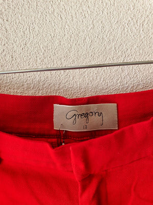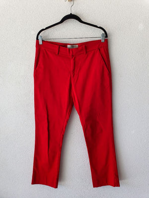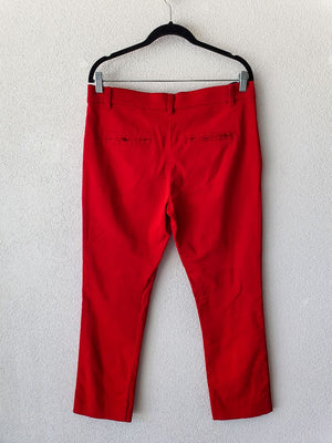 Red Straight Leg Trousers, Flat Waistband with Pockets