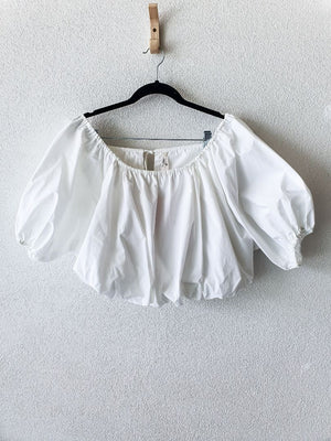 white crop short sleeve off shoulder top