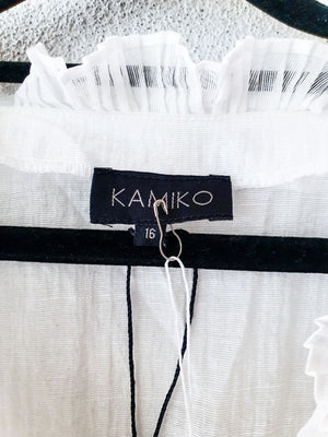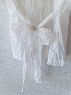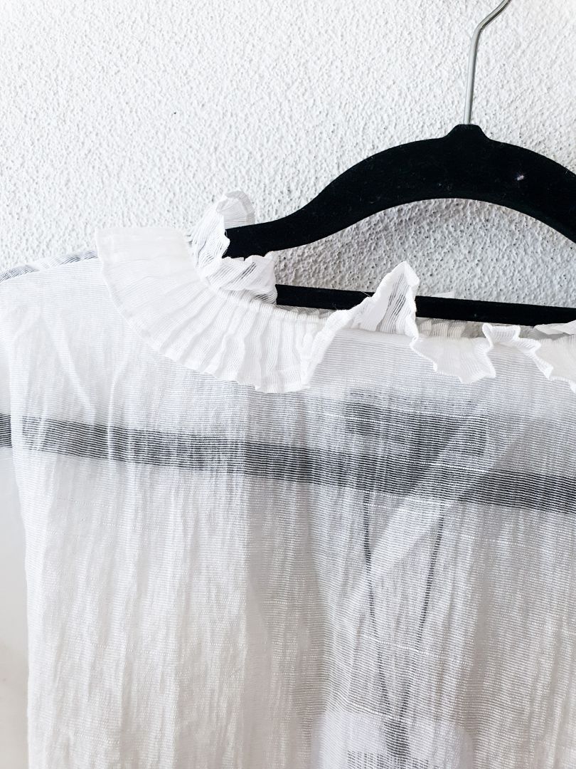 SHEER SHORT-SLEEVE RUFFLE BLOUSE