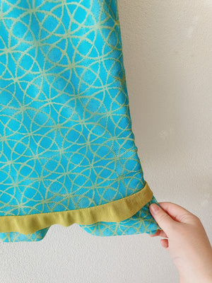 CIRCLE PATTERN BLUE & GREEN MESH BODYCON MIDI SKIRT