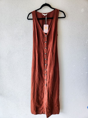 Linen Maxi Dress, Rust