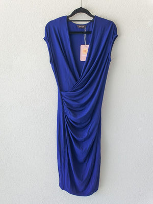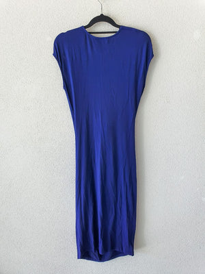 Blue Jersey Sleeveless Wrap Dress with Ruched Effect - Midi Length