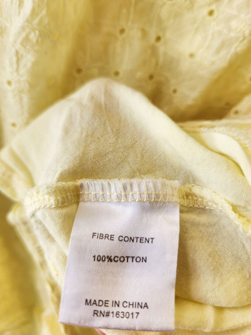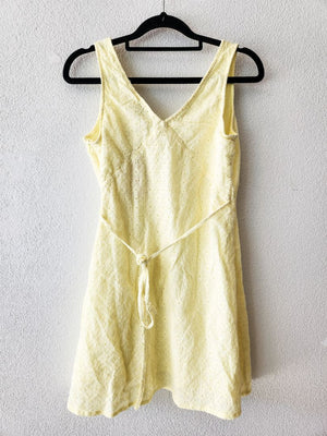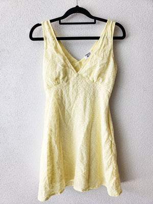 Pastel yellow broderie mini dress.
