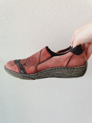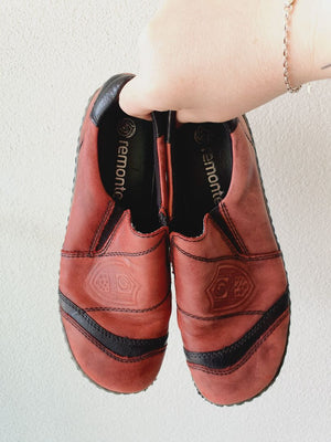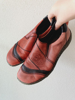 RED & BLACK SPORTY LEATHER SLIP ONS
