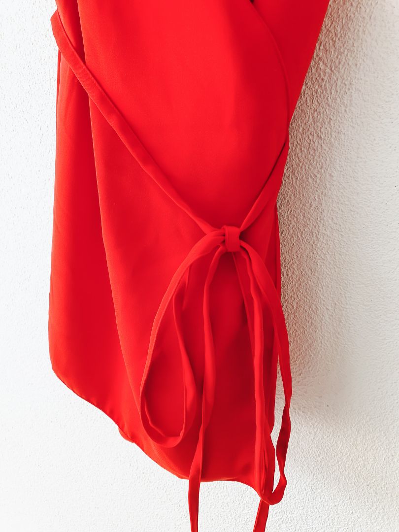Stand out in this vivid red wrap top from Australian boutique label, Stolen From My Sister. Known for their "effortless/sexy" event wear, this piece features a flattering V-neck and adjustable waist tie. Perfect for date nights or pairing with high-waisted denim for a festival look.