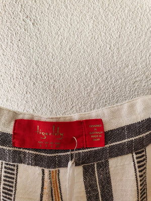 Mustard cream and navy stripe patterned overalls. 100% cotton, lovely thick fabric