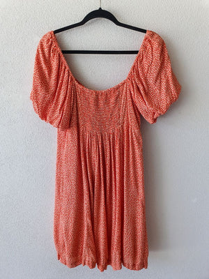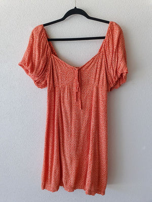 Coral Ditzy Floral Milkmaid Dress
