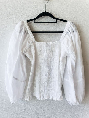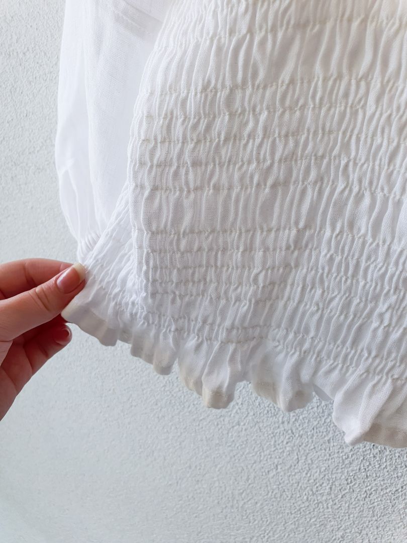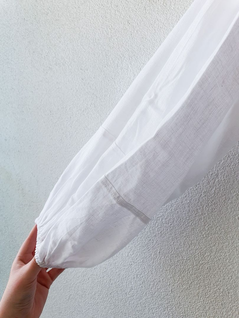 100% LINEN LONG SLEEVE RUCHED BODICE TOP