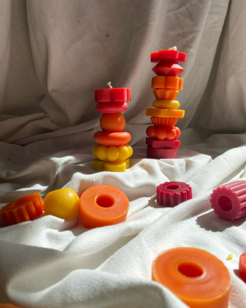 Poppy + Sage Sculptural Beeswax Stacking Candle, FIRE + SUNSET Small