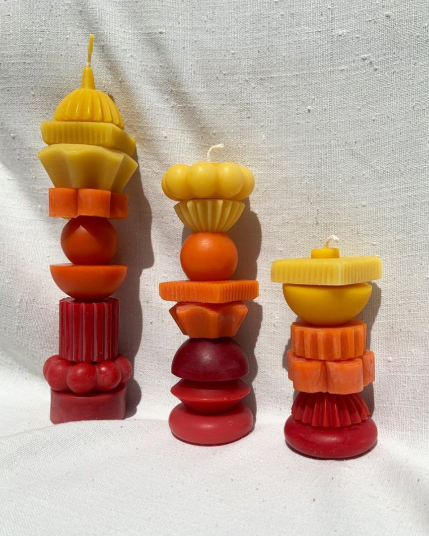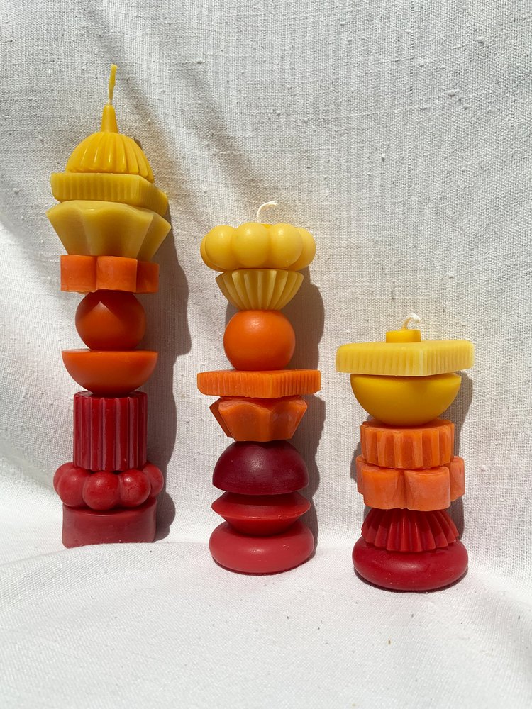 Poppy + Sage Sculptural Beeswax Stacking Candle, FIRE + SUNSET Tall