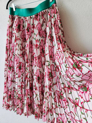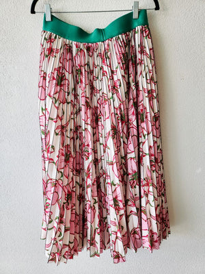 Pleated pattered skirt, green waistband