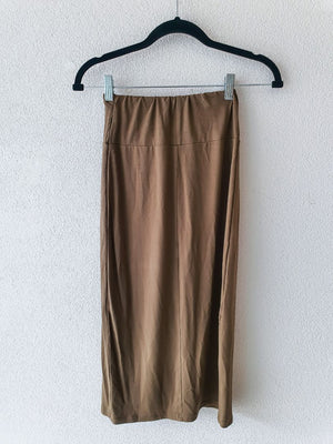 Olive green bamboo lycra drape knee length skirt