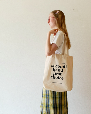 Carry sustainability with you! Our limited edition hemp tote bags are designed from deadstock materials, making them a sustainable option. Each bag is screen-printed with the signature "Second Hand, First Choice" design, perfectly reflecting our mission to support a circular fashion economy.