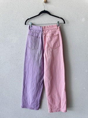 Purple and pink colour block straight leg
