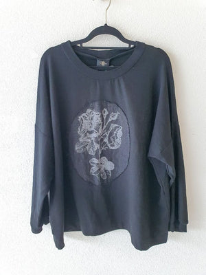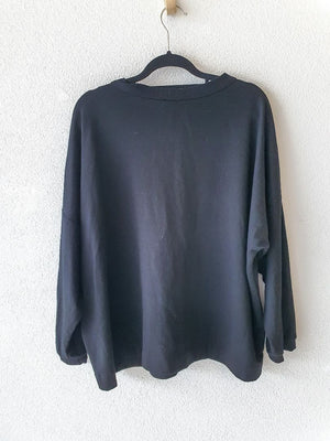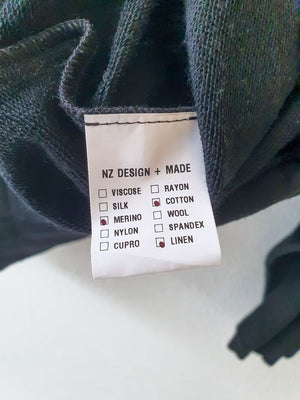 NZ made black merino top, S-M (generous fit)