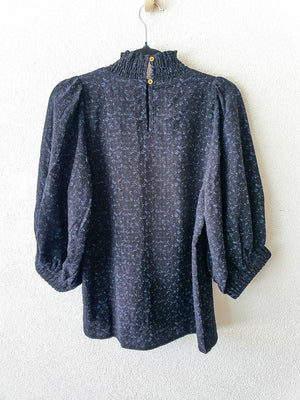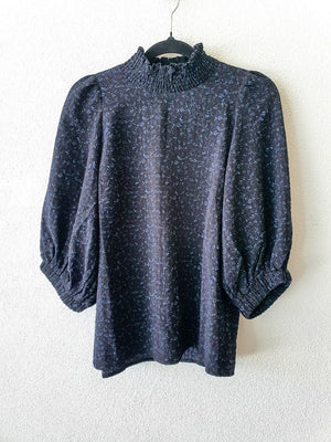 This blouse is a forever favourite. Designed in a classic, regular fit with a twist of details such as volume and elastic at sleeves together with a delicate puff at shoulders and a high neck with smock. The cool print is easily mixed with other pieces whether it is for day or night usage.