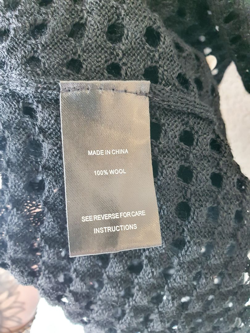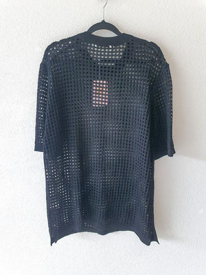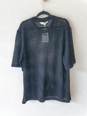 Black 100% wool short sleeved holey top
