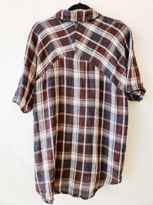 Plaid Shirt, Short Sleeves, 100% Cotton. Oversized Fit