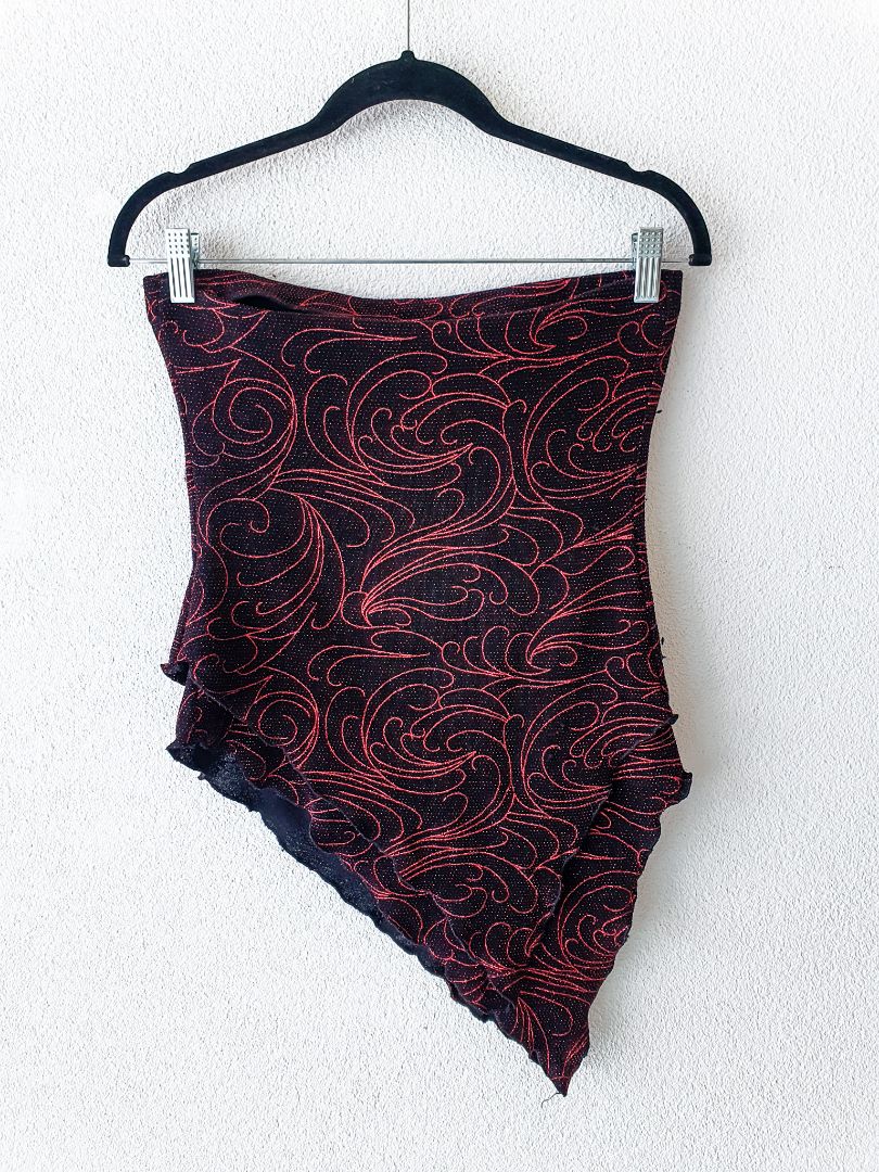 red and black strapless top