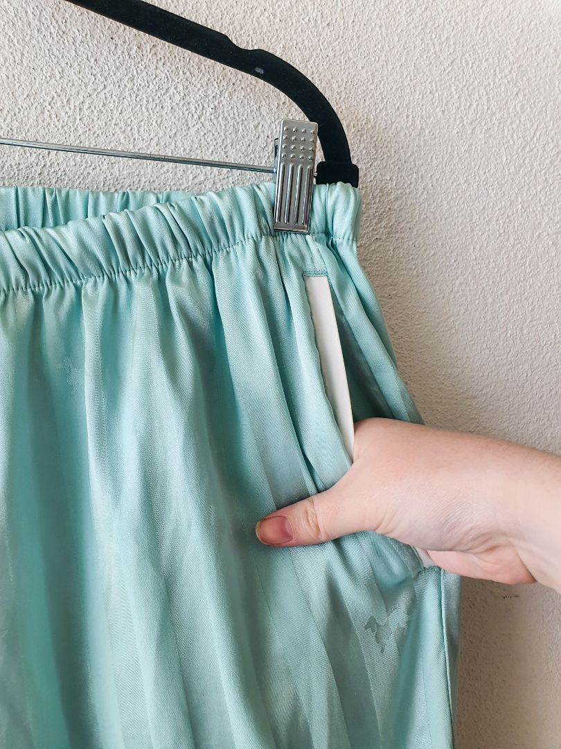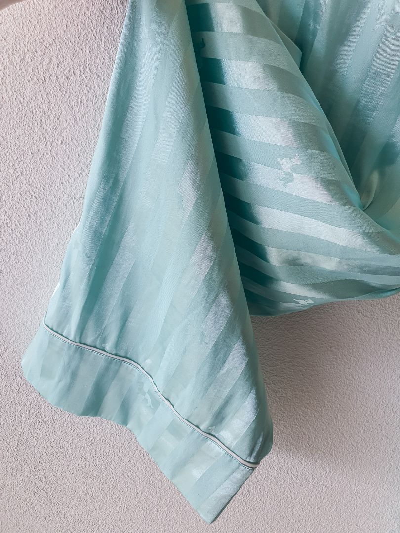 Long sleeves Aqua Satin Pyjama. Luxury sleepwear.