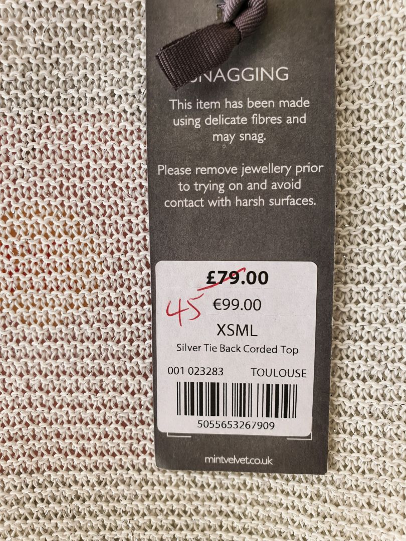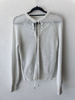 Summer Silver & Light Grey knitted Top, Plait detail down back